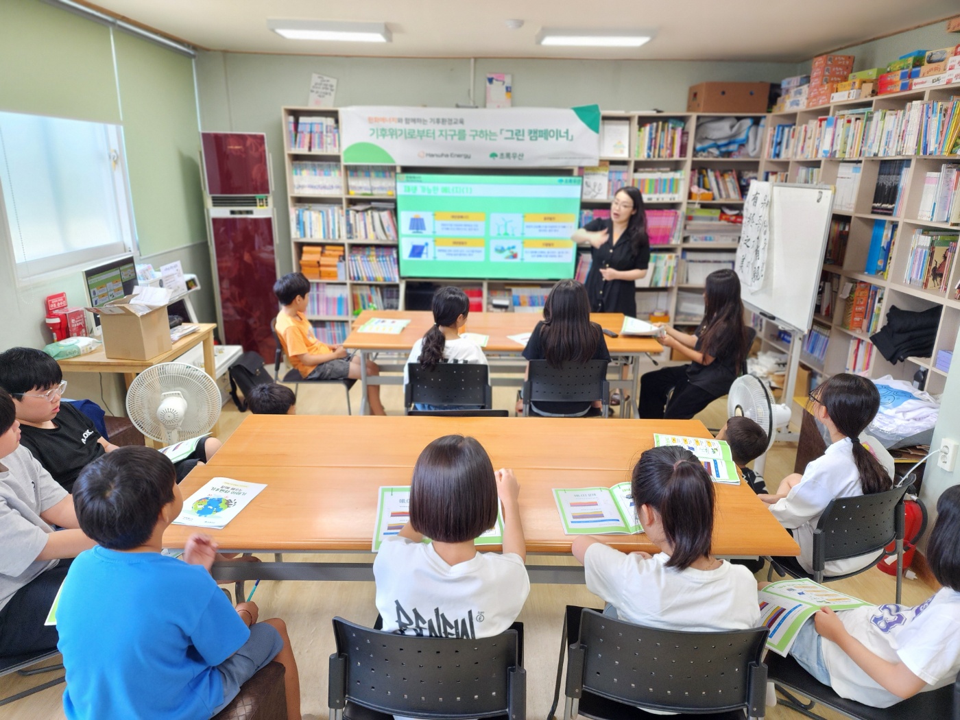 2025. 09. 01한화에너지는 2025년 7월부터 8월까지 한 달간 세종시 지역아동센터 5곳의 초등학생 100여 명을 대상으로 기후환경교육 프로그램 「그린 캠페이너」사회공헌 활동을 진행했습니다.
