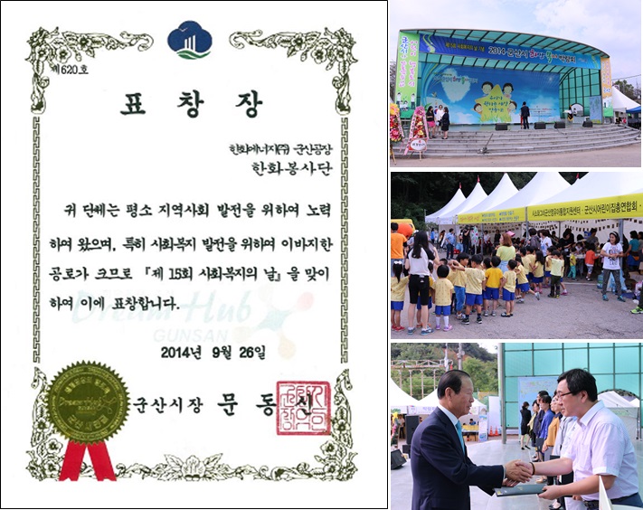 군산공장 '사회복지의 날 기념' 군산시장 표창장 수상