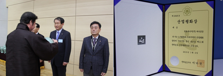 상생에 크게 이바지한 공이 인정되어 2014년 제11산업평화상 대상을 수상하였습니다.