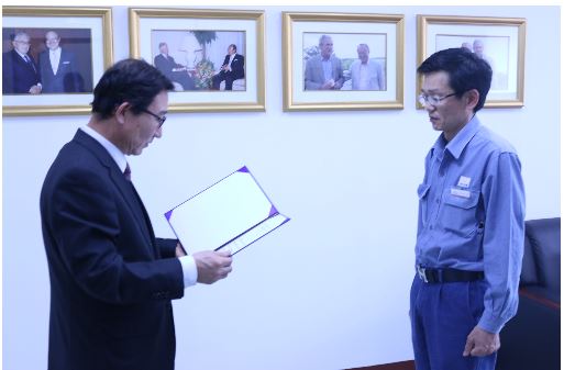 이에 대한 인증서 시상식이 군산공장에서 있었습니다.