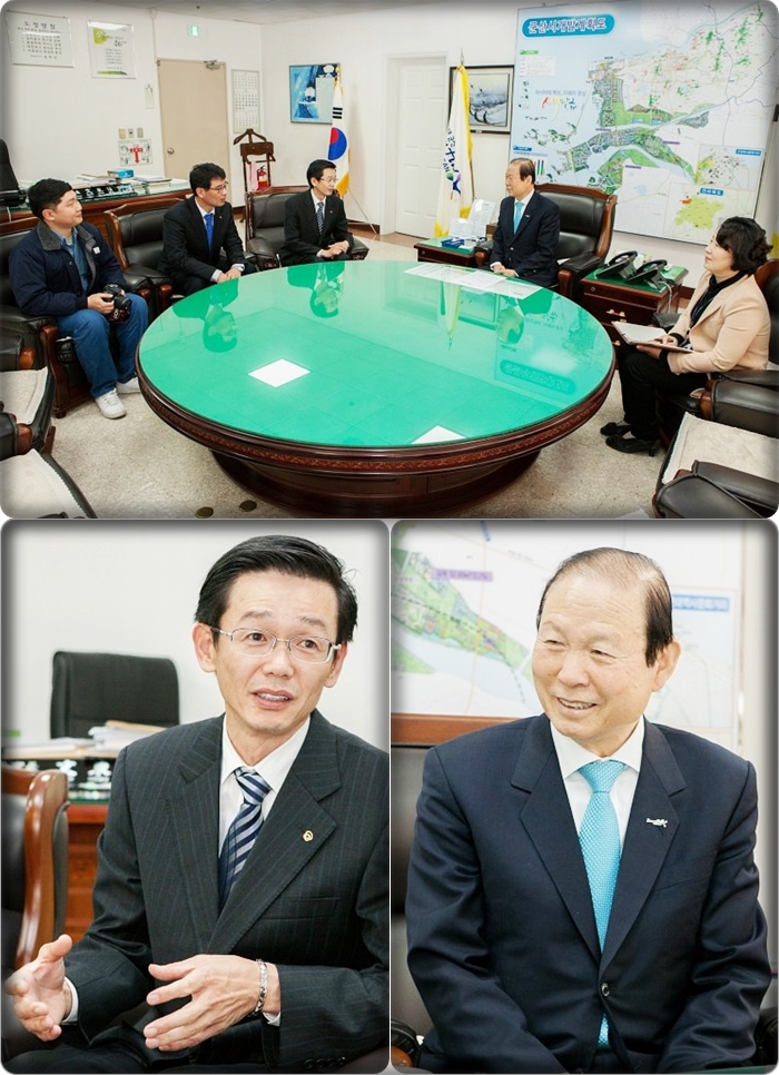 협약식 행사에 주선태 공장장과 문동신 시장이 참석하여 협약식을 개최하였습니다.