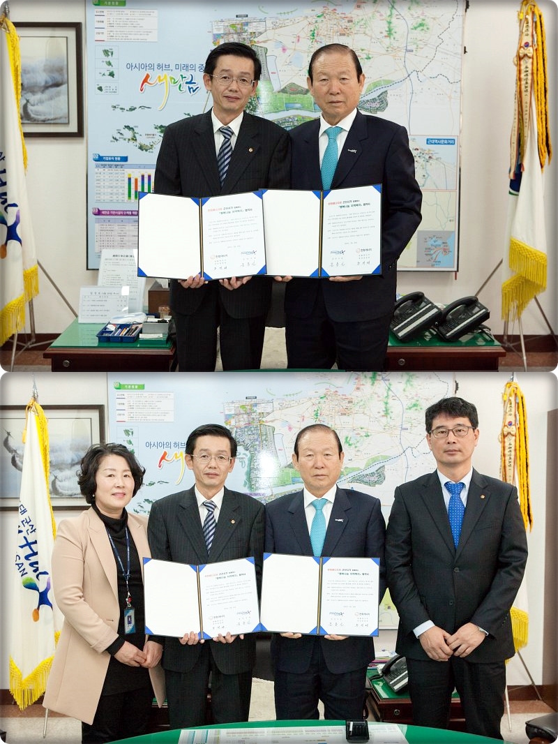 2015. 03. 263월 26일 목요일. 군산시청에서 한화에너지 군산공장과 군산시 간에 '행복나눔 지역복지' 협약을 체결하였습니다.