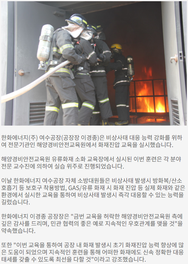 에너지/여수 - 해양경비안전원에서 화재진압 훈련 실시