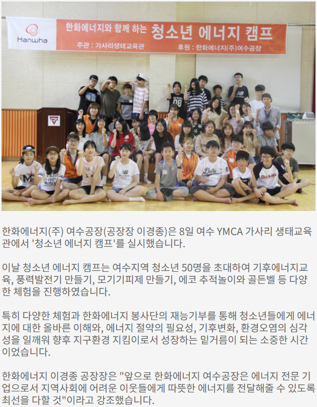 에너지/여수 - 한화에너지(주)와 함께하는 청소년 에너지 캠프