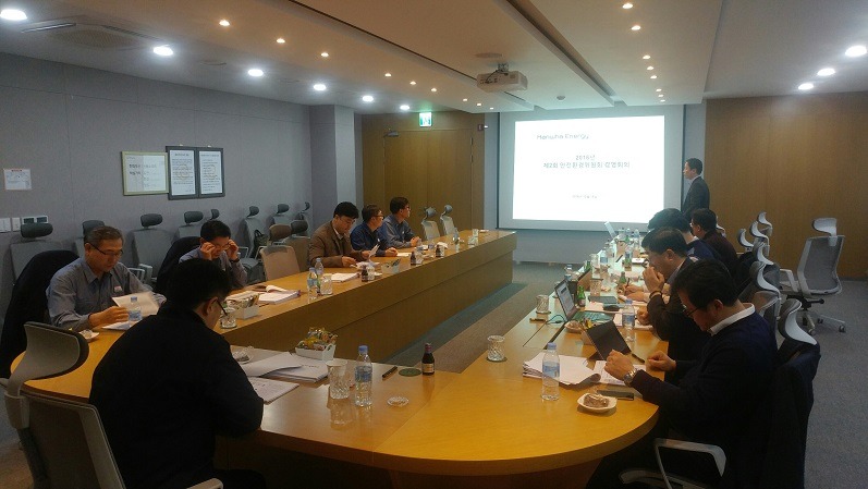 12월 15일(목) 한화에너지 군산공장에서는 '제2회 안전환경위원회 경영회의'를 개최하여, 안전환경분야 2016년 추진성과와 2017년 추진계획을 공유하고, 달성의지를 결의하는 시간을 가졌습니다.