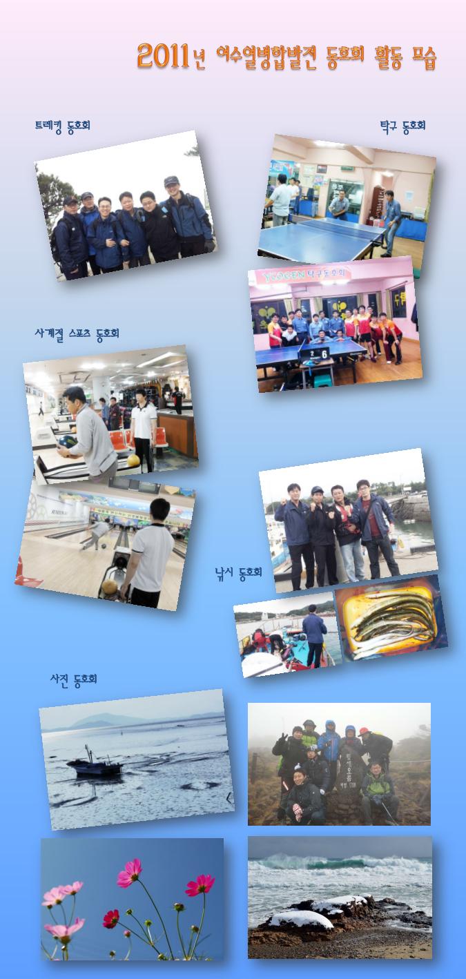 여수 앞바다에서 낚시도 하고 맛있는 회도 맛볼 수 있는 낚시 동호회, 그리고 아름다운 풍경을 사진에 담는 사진 동호회가 활동 중입니다.